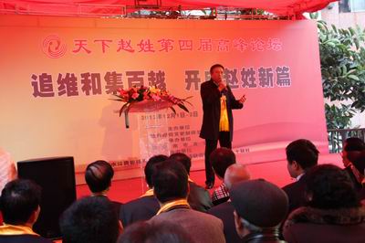 中华姓氏网 讯 2012年12月1-2日,由世界赵姓文史联研总会主办,赵姓南粤支承办的“追维各集百越 开启赵姓新篇---世界赵姓文史联研总会第四届高峰论坛暨棠溪赵氏宗祠宗亲联谊会”在广州市隆重举行,出席本次会议的代表有世界赵姓文史联研总会领导层、名誉主席及高级顾问、总会公益基金创始人、相关地方政府代表、海内外赵姓分会、支会、办事处代表及马、宋、劳三个赵改姓组织代表、棠溪赵姓代表等约1000人。经中华赵氏网站长赵公厅先生、副站长赵凌女士引荐,中华姓氏网(万家姓)总裁房恒贵也应邀列席了本次会议。