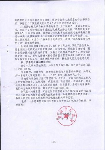 【本文说明】:不知因何种原因,有不少网友来信反映,本文发表的《江苏省江阴市民政局关于吊销违规组织“江苏殷商文化研究会”登记证书的决定》一文中政府正式文件的两幅图片在殷氏网中经常不显示。如果读者看不到江苏省江阴市民政局的这个文件,请点击打开下面的网址,观看江苏省江阴市民政局关于吊销违规组织“江苏殷商文化研究会”登记证书的决定的两幅图片: