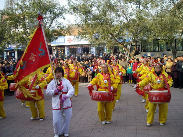 热烈的锣鼓队伍欢迎原来的韩国贵宾