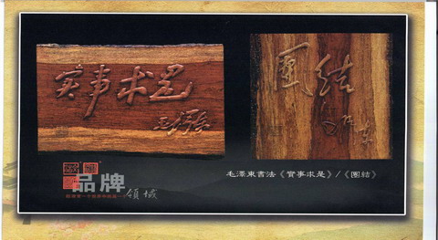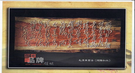 人文特性:书法,蕴藏着中华千古文化艺术的人文精神,它是一种优秀的风范,更是一个无极的课题。书雕,是继承传统中的创新,在五笔录入的时代弘扬了毛笔在悠悠五千年文化岁月中创造的传统文化,寻求到历史文化秉承传统和与时俱进的新的人文语言。钱文浩大师的书雕作品曾多次作为外交礼品赠送外国要员,并被不少喜爱者购买收藏。1999年,荣获“澳门回归国际礼品、纪念品成果博览会金奖”。
