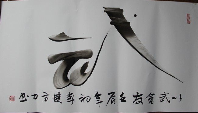 王濮方不满足传统创作方式。他通过多次探索与尝试,研创出既有传统书画韵味,又有鲜明时代特色的全新艺术形式─濮阳东方刀书画。