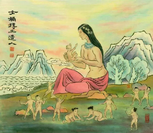 太初混沌,宇宙鴻蒙。盤古施象帝之威,乾坤始奠;女媧喣摶泥之氣,男女乃成。日月馳而風雷動,喬蓁蔚而鳥獸行。人文沐三皇之拓,物理披五帝之功。巢穴燧火,奉祀結繩。樵漁畋狩,稼穡織耕。太昊悟河圖,推筮卦乎易演;倉頡察獸跡,理文形乎字生。仰天神而拜祭,尊地聖而圖騰。