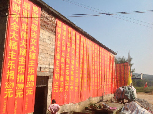 捐款300元(含300元)以上者,功德碑上刻上姓名,捐款3000元(含3000元)以上全家福刻上功德碑。凡捐款都上红榜张示!友好兄弟亲戚朋友捐款者同样上红榜张示公布!