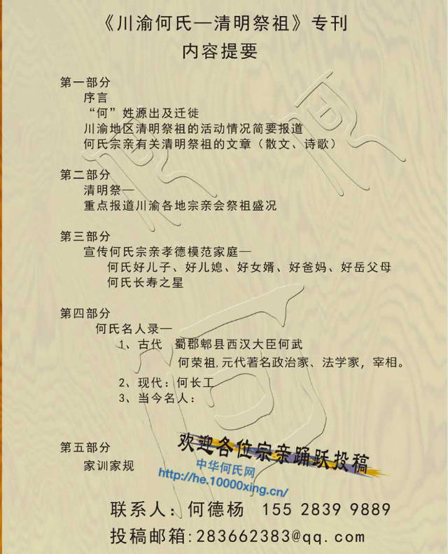 《川渝何氏—清明祭祖》专刊内容提要及征稿启示