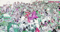 袁鹏飞同事介绍说中国人物画作为成熟的画种,在世界艺术史上具有独特的艺术价值和审美意义,它以炉火纯青的艺术高度凝聚了中国人民智慧的创造精神。在漫长的岁月中,它又吸取了多民族绘画的优点,集不同画种的长处于一身,丰富了自身的表现力和精神内涵;它的包容性、叙事性、表现性、抒情性、现实性与史诗性,奠定了人物画无与伦比的艺术特征和审美价值体系。袁鹏飞的人物画论道图就是发扬我们中国人尊师重道好学博学的主旋律。作品【大爱无疆】记录玉树地震这个特殊的时刻,在废墟里抢救生命是100万子弟兵神圣的职责,坚强的在这里与时间赛跑、与生理极限抗争,出色地完成了抢救群众、维护灾区治安秩序、疏导灾区道路交通、救助受灾同胞等急难险重任务,出色的完成党中央任务袁鹏飞作品以线为主要表现方式,以线为主的绘画理念,确定了它的结构特点、空间意识、形式规律、美感魅力,以及以书入画、笔墨意味,乃至节奏、韵律等艺术独特性,进而形成笔法、墨法、线的丰富形态等技法要素。它们随着时间的推移,不断地添加或完善着人物画艺术自身。