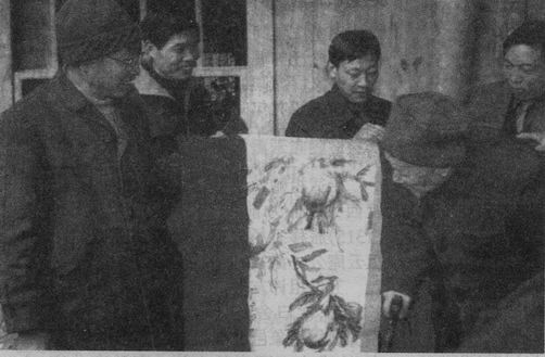 三门县百岁老人鲍善新春佳节喜看年画(鲍志成辑自《浙江日报》)。