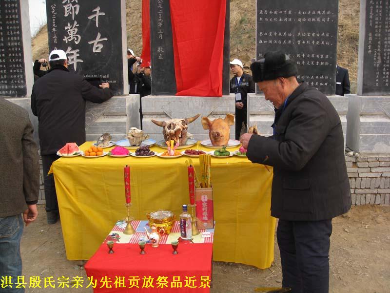 最后,各支殷氏宗亲将从全国各地所带宗谱、族谱、家谱(含电子版宗谱),陈列于祖陵之前供奉。11时整,拜祖大典在鼓乐声中结束。