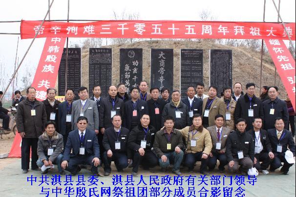 (中华殷氏文化研究网HTTP://WWW.Yin-China.CN消息) 2009年3月11日上午,一扫昨日飞雪片片,迎来了整天的朗朗晴空。在中共河南省淇县县委、淇县人民政府的鼎力支持和精心组织下,在淇县各社会团体的大力帮助下,来自全国十多个省、自治区、直辖市的殷姓代表160余人,在中华殷氏文化研究网(简称“中华殷氏网”,下同)站长殷作斌先生、中华殷氏网祭祖团团长殷网根先生、副团长殷文宏先生率领下,代表中华殷氏网祭祖团、中国河南安阳殷氏宗亲会、中国河南鹤壁淇县殷氏宗亲会、海内外200余万殷氏同胞和数千万源于子姓的殷商后裔,在河南省淇县欢聚一堂,继承一代领袖毛泽东和一代文人兼历史学家郭沫若的遗志,隆重举行殷商王朝末代君主帝辛(纣王)殉难3055周年正名大典,紧密团结在胡锦涛同志为总书记的中国共产党中央的周围,努力为弘扬中华民族的优良传统,构建和谐社会,做出新的贡献。