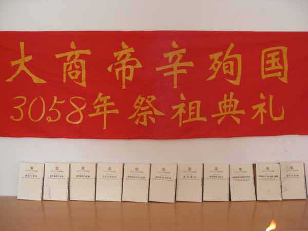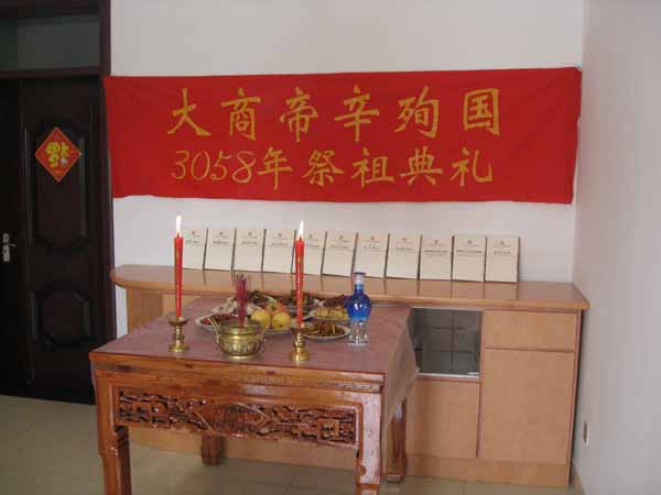 2012年2月26日(农历壬辰年二月初五日)是大商帝辛殉难3058周年纪念日。是日,本网副站长殷文宏先生在江苏茅山风景区新建重屋厅堂内为帝辛举行隆重的家祭。现将文宏站长家祭的系列图片发表如下,以表达我们殷商两网对先祖的怀念和无限崇敬之情!