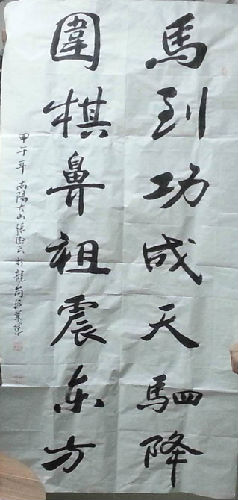 庄梓先生向万家姓网总裁房恒贵赠送了四幅他请中国书法家协会会员、南阳书画家张卫武所书写的四幅房氏文化作品:“房氏八骏”、“房,以土为基,承天起势”、“马到功成 天驷降,围棋鼻祖震东方”、“天驷昭春兆农祥,八骏纵横保周邦”及秦俊先生所著《楚庄王传》一书。