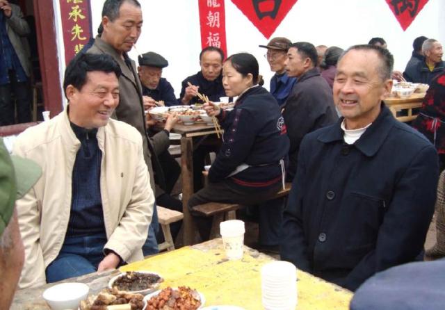 1995年8月,吉春(左一)与美国倪豪士(左二)、韩兆琦教授(右二)、徐村村长同增旺(右二)在陕师大合影