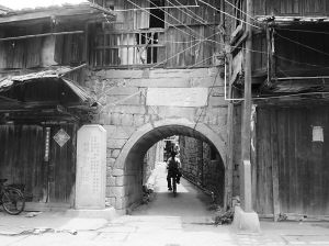 站在东荡口看吉墩村(桥头南岸的楼房是18世吉素秋公后裔住宅)