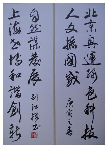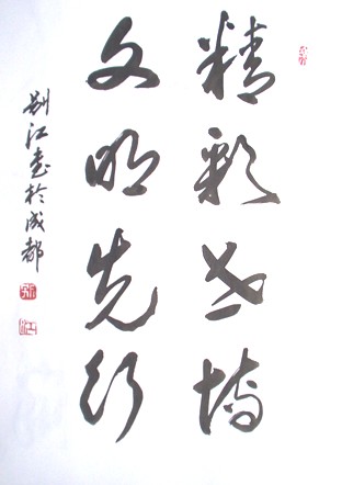 别 江(1957.6— ) 笔名另工,男,汉族,生于四川省巴中市,中共党员,大学本科文化。一级书法师。该同志现为中国书画印研究会高级会员、中国青年书画家协会会员、中国艺术研究院文化艺术市场研究中心书法家、河南中州书画艺术研究院高级书画师、中国硬笔书法协会会员、四川省硬笔书法协会副会长、成都市硬笔书法协会副会长。自幼酷爱书画、写作,笔耕不辍。书法初学颜真卿、王羲之等先贤大师的技艺,继临张迁碑、曹全碑等“千古字范”。作品风貌汲传统精华,融时代气息,追求情趣美和思想意境美;笔法追求柔中有刚,流畅自然,清丽淡雅而含古朴苍润之韵;尤以行草灵活多变,不拘一格。作品多次参加国内外书法大赛和展览,并先后获一、二、三等奖,以及金奖、银奖、荣誉奖、优秀奖等。撰写的艺术论文《书法要反映时代精神》、《浅谈书法三要素》、《书法教学之我见》、《继承是为了更好的发展》、《如何培养练习硬笔书法的兴趣?》及书法作品在《中国书画报》、《新文化报》、《中国集藏文艺报》、《现代书画家报》、《炎黄书画》、《中国硬笔书坛报》、《三峡书画报》、《中国校园书画》、《墨缘书画报》、《中国诗书画报》、《大众收藏》等几十家刊物上发表。作品和传略收入《现代中日美术通鉴》、《当代书法名家楹联大观》、《科学中国人.中国专家人才库》、《国际现代书画名家大辞典》、《百年经典——中国书法全集》、《20世纪中国美术书法家作品拍卖库》、《中国当代社会科学专家学者大辞典》、《中华名人大典》、《东坡诗意书画选》、《艺术之光——纪念邓小平诞辰100周年书画家作品集》、《中华书画家大典》、《中国历代书画名家辞海》、《中国书法家选集》、《时代足迹——与时俱进的中华儿女》、《纪念孔子诞辰2560周年诗书画集》、《中国文艺界名人库》等辞书。作品被书法艺术研究院、文学院、书法碑林、博物馆、纪念馆、画廊、名胜景点、香港东方文化中心、香港书画研究院、韩国碑林园和新加坡共和国之新神州艺术院等国内外单位和个人收藏。被授予“中国当代800名实力派书画家”和“跨世纪中外书画艺术名人”荣誉称号。该同志的座右铭是:学先人而为我用,师造化以抒己情。