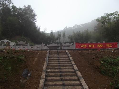 截止目前,墓地只剩新拓展出来的最下面一层平台因填土沉降还没有硬化,其他平台、过道、栏杆、墓碑和绿化等工作都已经完工。